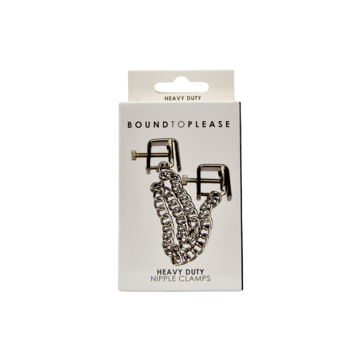 These quality, adjustable press clamps adjust fluidly and effortlessly allowing precision adjustments in intensity. Connected by a silver chain, the metal links also add sensory arousal when against skin.