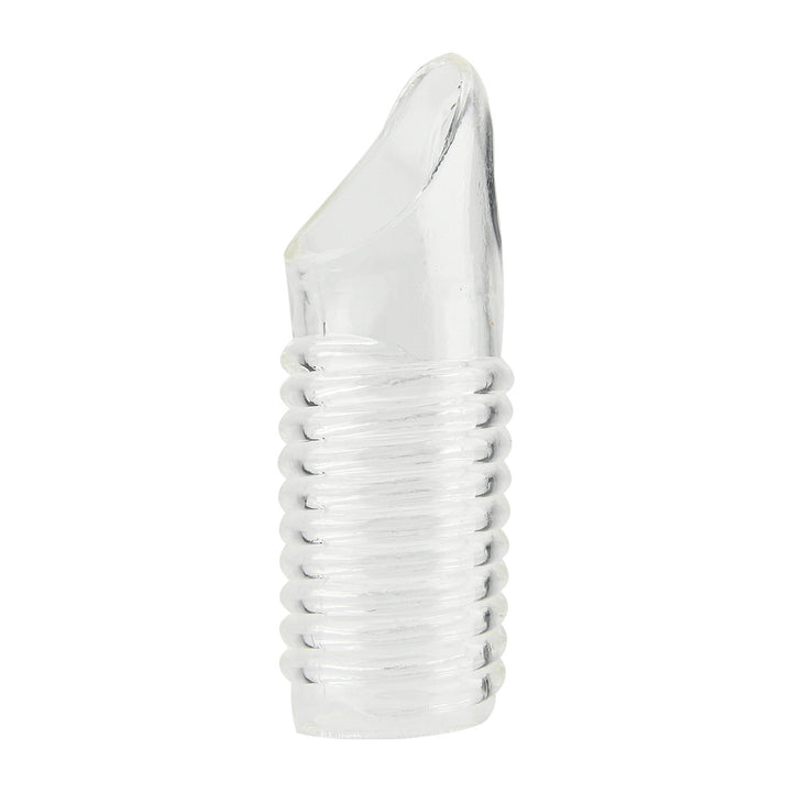 Dive into a world of enhanced pleasure with this stretchy, ribbed penis sleeve. The comfortable penis sleeve can boost your partner's pleasure and your girth. It features a ribbed design that will stimulate your partner both vaginally and anally and has a ball loop to keep the penis sleeve in place.