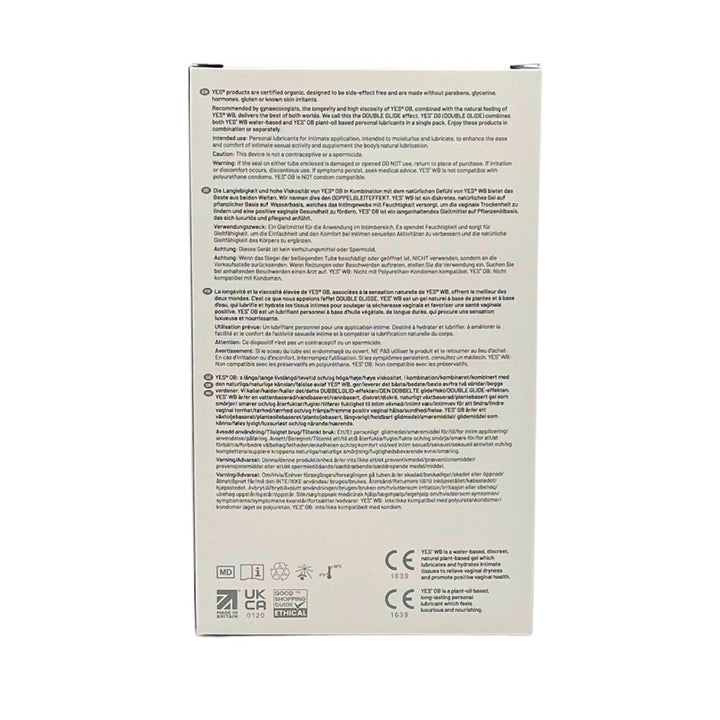 YES DG (double glide) combines both YES WB 100ml water- and YES OB 80ml plant-oil based personal lubricants in a single pack. Enjoy these products either separately or in combination.